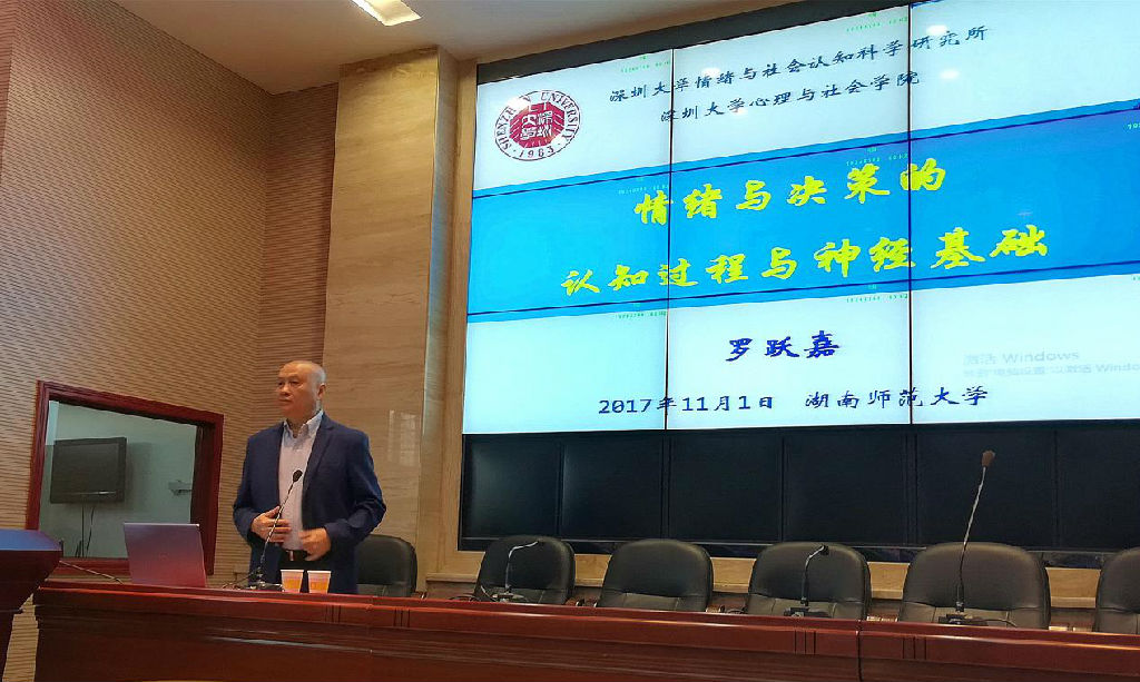 (通讯员 李雯婕 李汪)11月1日下午,深圳大学心理与社会学院特聘教授罗跃嘉老师应邀到湖南师范大学教育科学学院讲学,作了“情绪与决策的认知过程与神经基础”的主题讲座,教育科学学院副院长丁道群教授主持了本次讲座。
